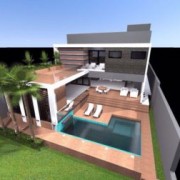 Sobrado com alto padrão de acabamento, contendo 3 suÃtes e escritório no pavimento superior, sala estar/jantar, sala tv, lavabo, 01 suÃte, cozinha, área de serviço, despensa, espaço gourmet, academia, vestiários e piscina no pavimento térreo.